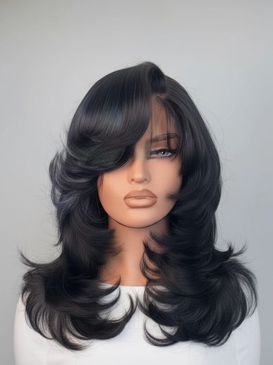 Experience the confidence and flawless style of our Luxury Volume Layered Unit. This meticulously crafted wig, designed to function as a cranial prosthesis, offers superior comfort, security, and a stunning, natural appearance. It features voluminous, cascading layers and a beautiful, sweeping side fringe that perfectly frames the face, delivering a timeless, glamorous look. The classic black color enhances the shine and texture, making this unit an instant head-turner.